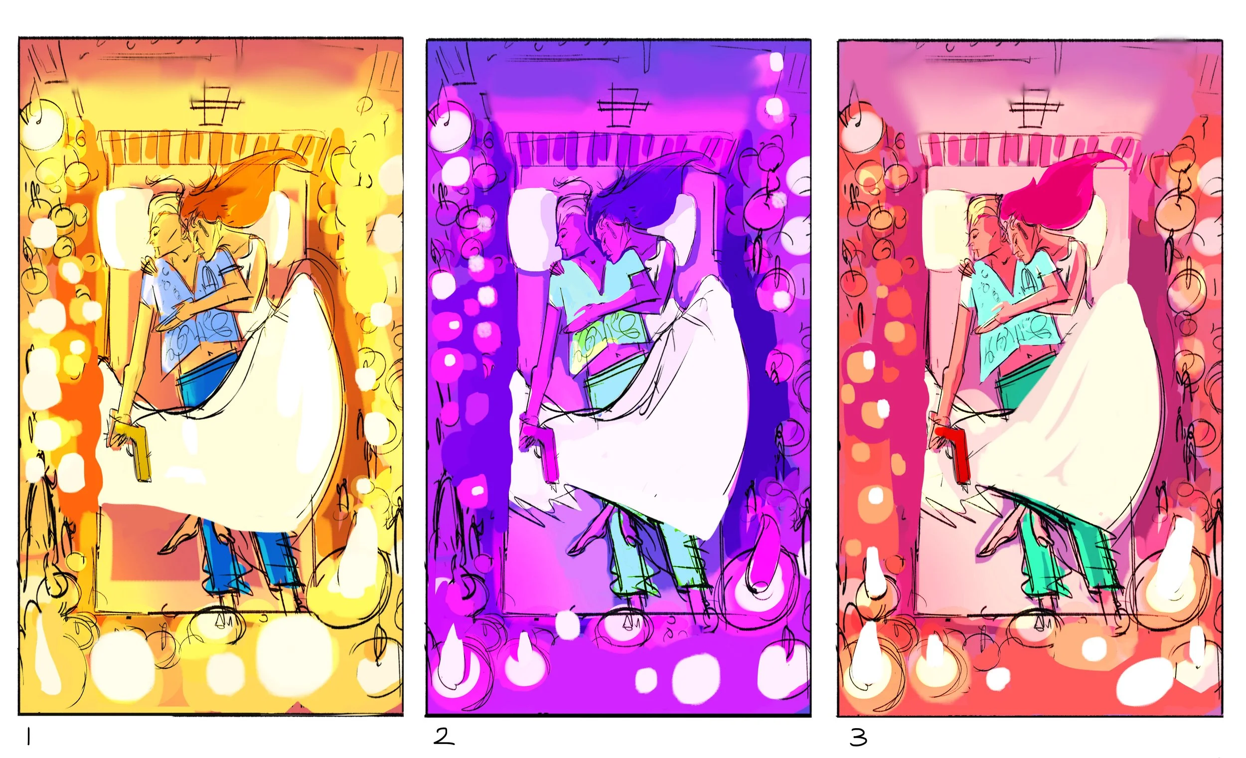 Starting with sketches to explore different possibilities, then moving onto various color studies, and finally the final vision!