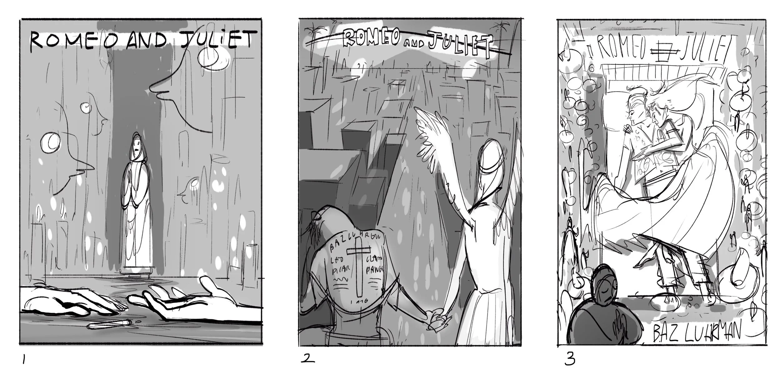 Romeo and Juliet - Experimenting with different colors for the candles and eventually deciding to pursue a yellow and orange hue for a loving and warm atmosphere.