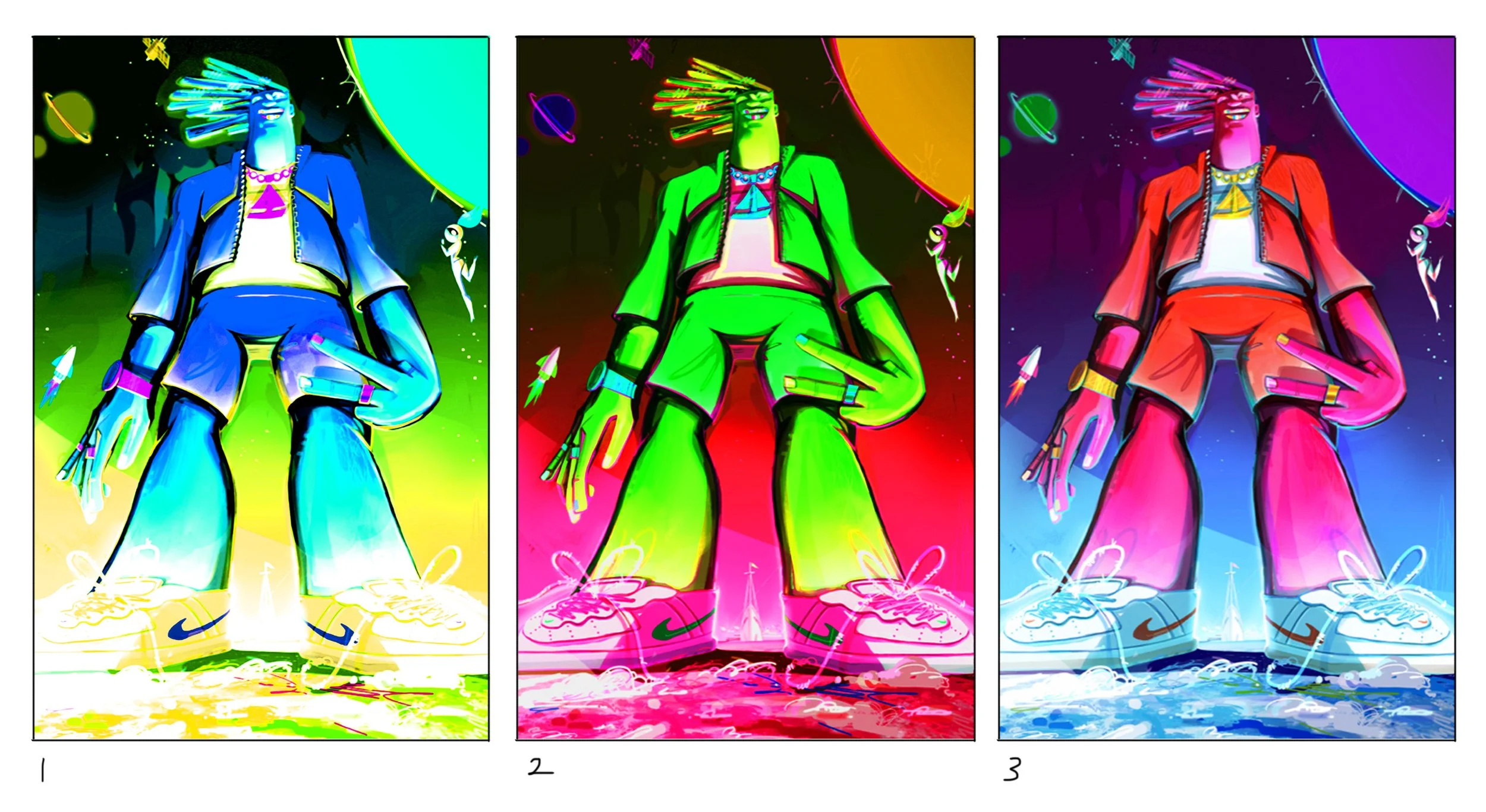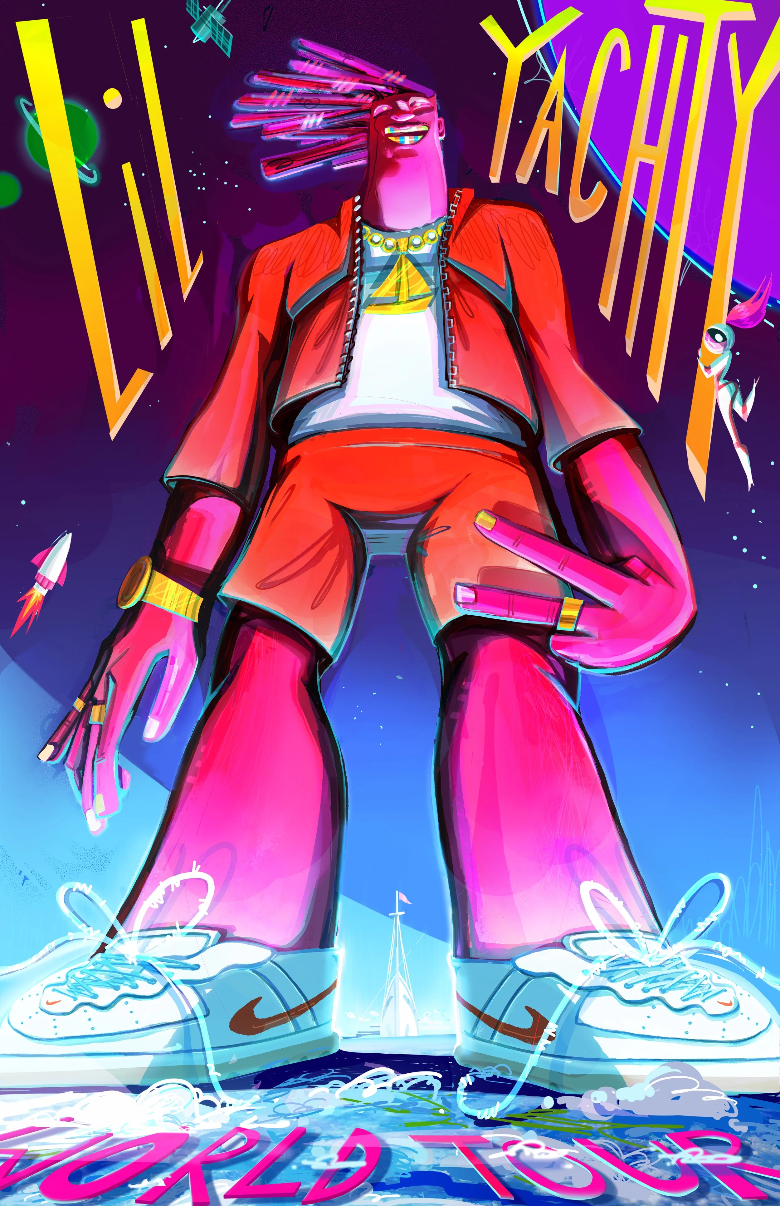 Lil Yachty Tour Poster - Sketching close-up and zoomed-out compositions to find the best angle to represent Lil Yachty! Experimenting with different color studies to find what represents him best, neon and psychedelic? Vibrant and dramatic?